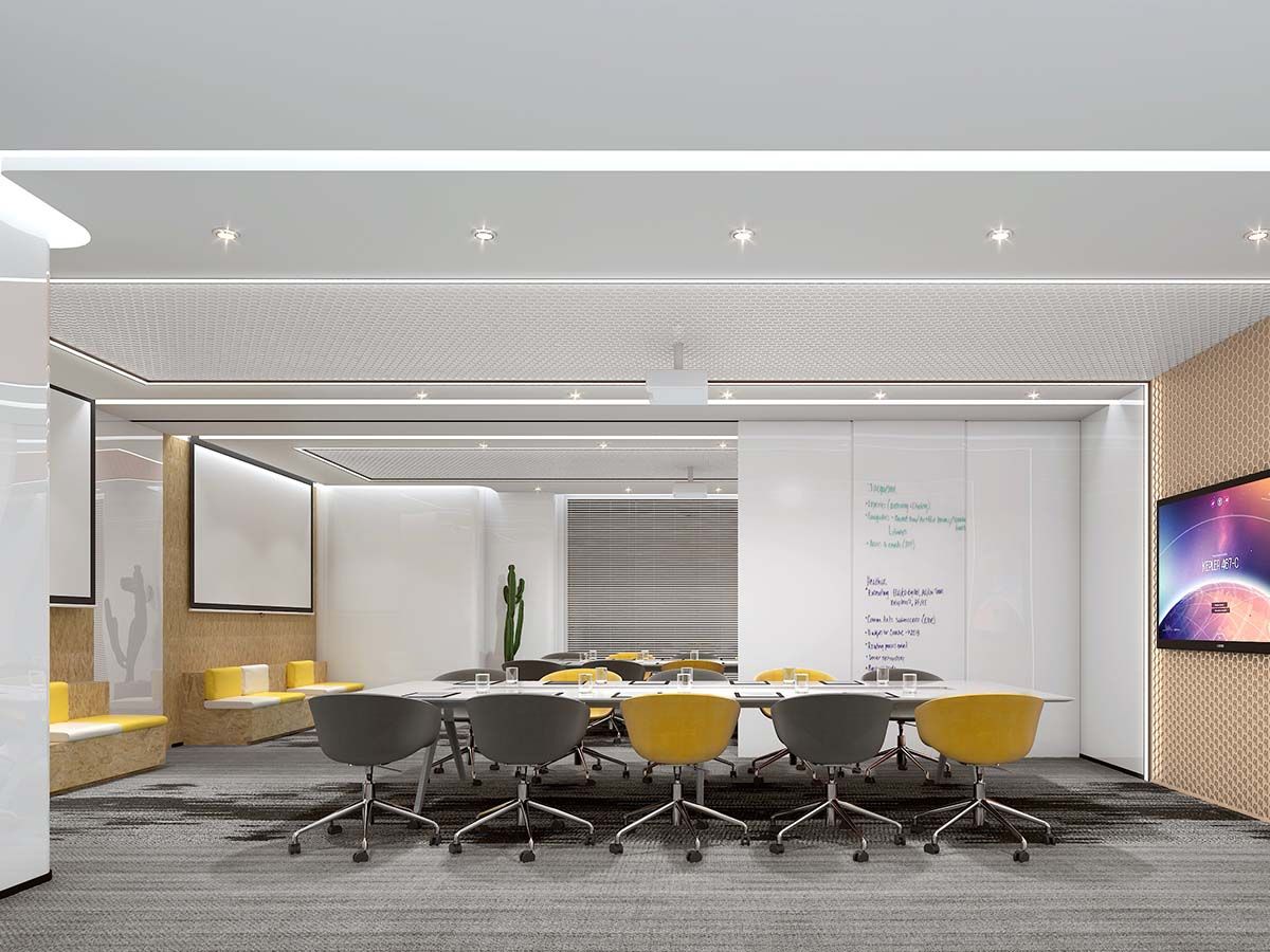 明暖的橙黃色穿梭在整個辦公空間,該項目的主題就是年輕時尚輕松,前臺白色天花散落的燈光,不同深淺程度的橙黃色,體現了創新孵化中心辦公室公司“舒適、時尚、健康”的服務指南,從而提高了品牌的親和力與附加值。以橙黃色元素貫徹整個設計思路,帶給人一種年輕活力,向前拼搏的感覺。